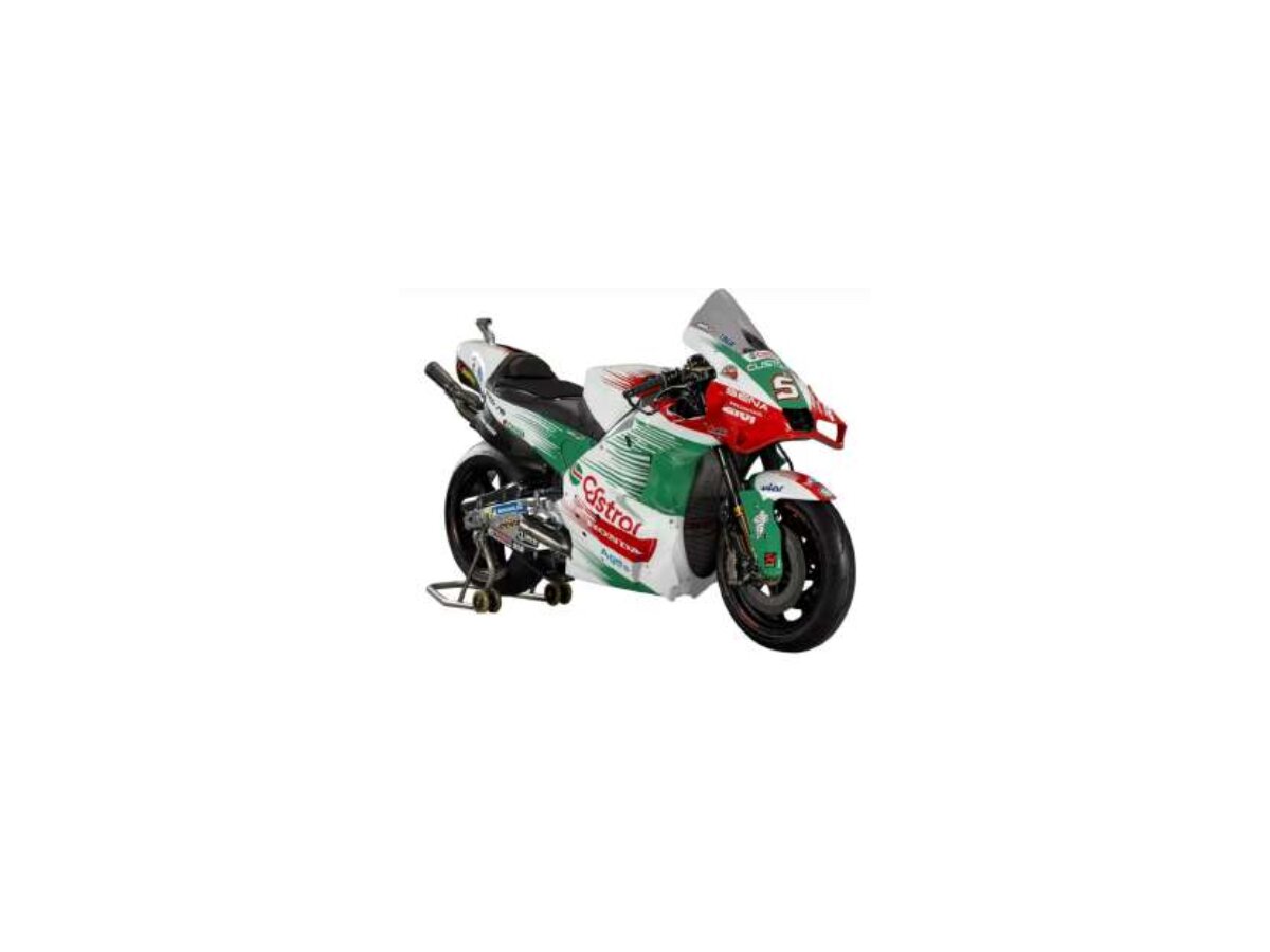 Gedetailleerd schaalmodel van de Castrol Honda Lcr #5 Johann Zarco 2025 in schaal 1:18 en kleur rood/wit/groen.