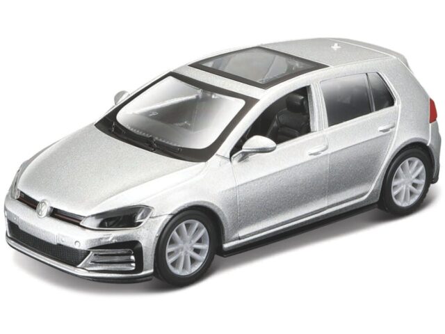 Gedetailleerd schaalmodel van de Vw Golf Gti 2017 Pull-back in schaal 4,5″ en kleur zilver.
